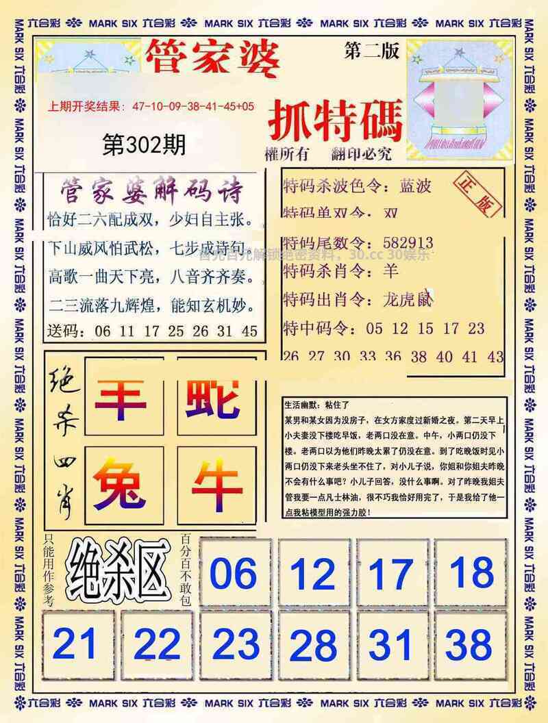 307期:六合三怪/内部平特诀/独家六合玄机/六合对诀/波色输尽光