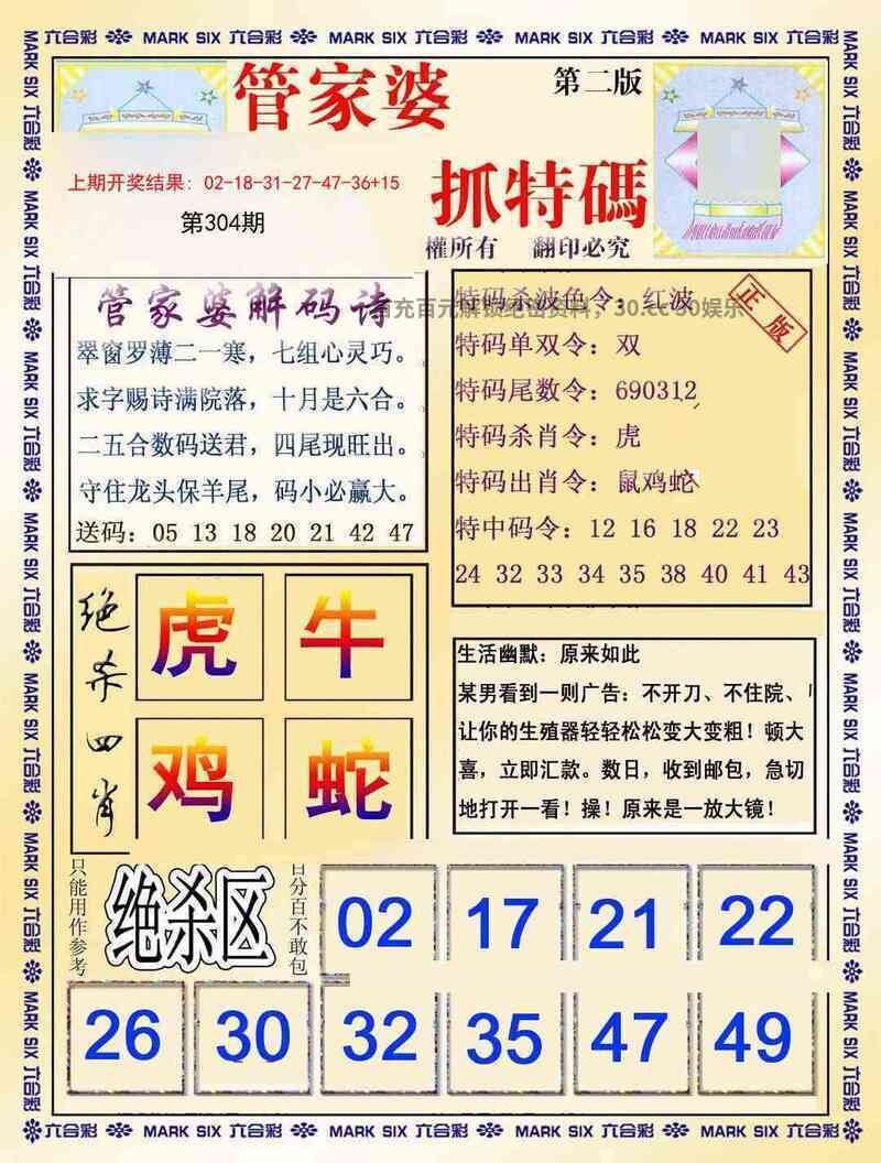 304期绝杀三肖〖虎猴鸡〗开:马48准