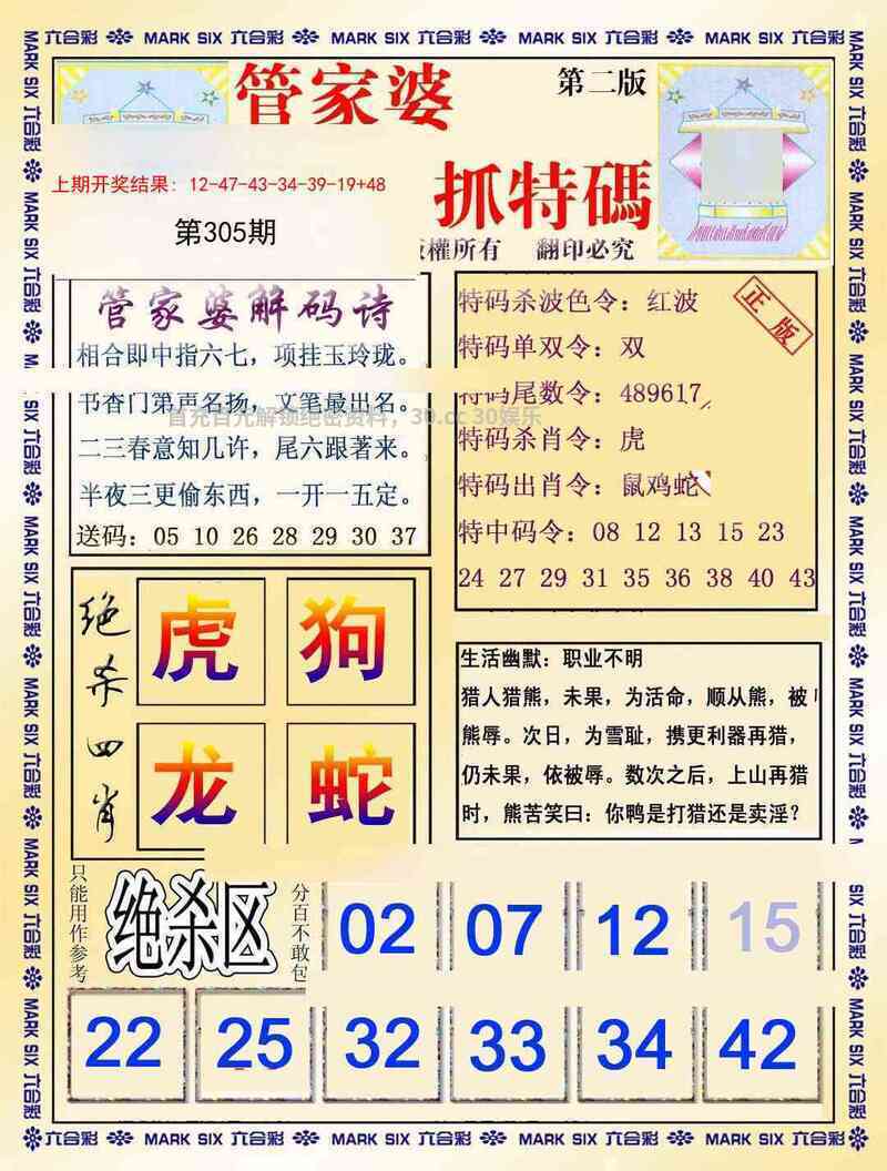 307期:中特两句经/管家婆玄机/龙仔凑热闹/彩霸王出肖料/狗不理